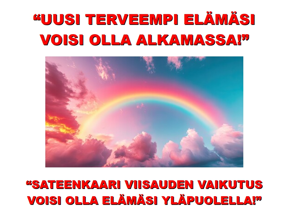 Nykyinen Hyväksytty Elämäntyyli → Vääristynyt Omatunto → Terveysongelmat → Puhdistusrutiini → Puhdistettu Omatunto → Alkuperäinen Omantunnon Toiminta Palautuu → Uudistuva Terveys Alkaa Toimia eli “Auringonnousu” → Parantuminen ja muut Elämän Onnistumiset johtuen “Sateenkaari Viisauden Ohjauksesta” → Uusi Parempi Elämäntapa → Hyvä, Pitkä ja Terve Elämä!